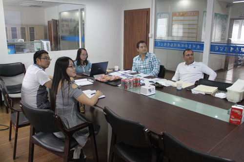 The two customers from Venezuela needed a complete unit of cheese processiong equipments. On June 30th 2014, they came to our company to negotiate with sales staff and engineers on specific details and went to visit the food processiong equipment in our factory.