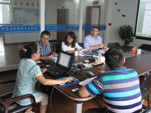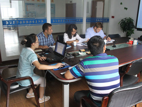 2014年9月11日,美國客戶因業(yè)務(wù)擴展需要訂制全套爆爆蛋生產(chǎn)線設(shè)備,來我公司與銷售人員和工程師進行具體細節(jié)的洽談。