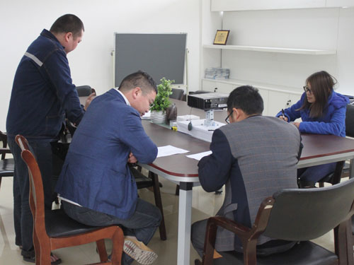 2015年4月9日,浙江杭州客戶需要定制一臺(tái)發(fā)酵罐,來(lái)我公司與銷售經(jīng)理和技術(shù)工程師進(jìn)行具體細(xì)節(jié)的洽談。