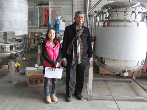 經(jīng)過與業(yè)務(wù)員的多次溝通與確認,新加坡客戶于2015年3月12日在我公司下單一臺600L高壓蒸煮鍋。目前設(shè)備已接近收尾工作,客戶來我公司驗貨,業(yè)務(wù)員熱情接待并為其講解了我公司的其它機械設(shè)備。